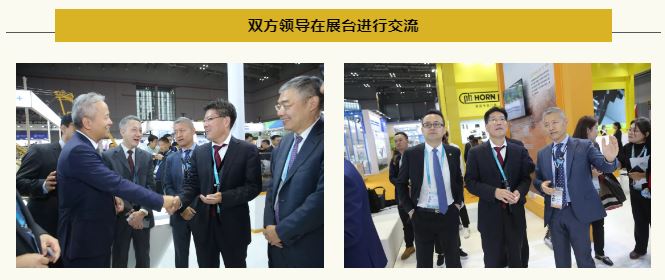 JOC董事長黃宏亮等一行人參觀了卡特彼勒展臺, 卡特彼勒全球副總裁陳其華介紹了卡特彼勒這幾年在中國的發展。雙方希望未來共同圍繞“一帶一路”國家戰略進一步加強溝通交流,同時針對如何提高產品的運營效率以及降低運營成本進行了深入討論,取得共贏。