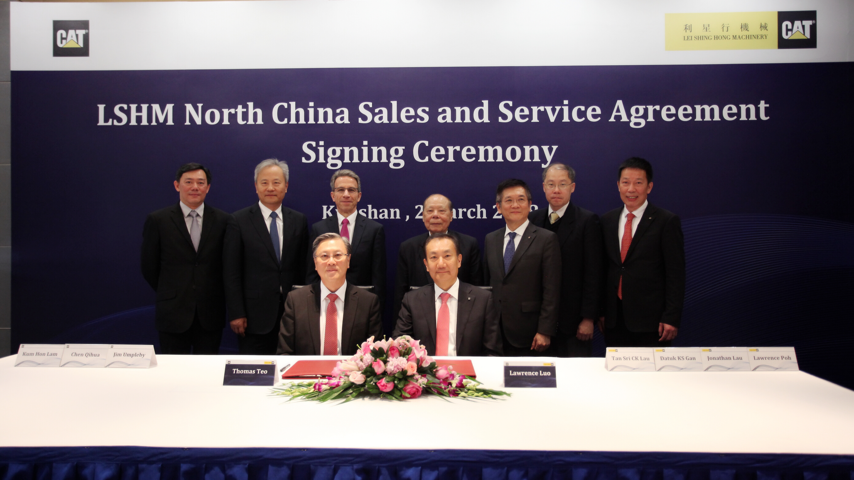 2018年3月2日,卡特彼勒首席執行官安博駿到訪利星行機械昆山總部,香港利星行集團董事局主席丹斯里劉楚群專程來到昆山迎接卡特彼勒一行,雙方正式見面并進行了愉快的會談和交流。作為利星行機械投資方代表,利星行集團首席執行官拿督顏健生,利星行機械集團副主席劉國基,利星行集團執行董事、利星行機械集團首席執行官傅耀生一同參與全部會議和交流議程,并熱情接待了此次陪同到訪的卡特彼勒高層成員,包括卡特彼勒全球副總裁、卡特彼勒(中國)投資有限公司董事長陳其華,卡特彼勒大中華及印度區分銷服務總經理趙文才,卡特彼勒全球基礎建設行業大中華及韓國總經理林錦漢,卡特彼勒華東/華西及臺灣地區分銷服務總經理胡巍和卡特彼勒華北/東北及韓國分銷服務總經理張文。